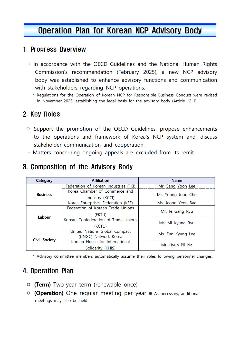 (Dec 18, 2025) Operation Plan for Korean NCP Advisory Body