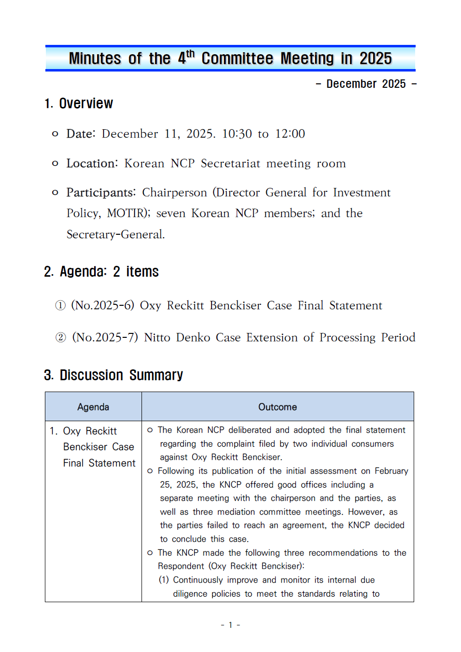 (Dec 11, 2025) Minutes of the 4th Committee Meeting in 2025